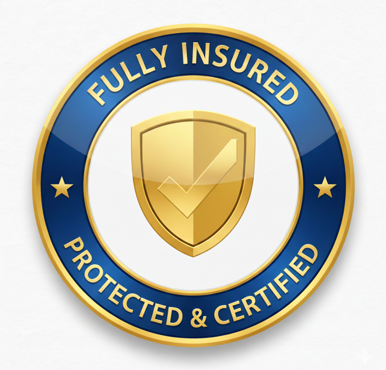 Insurance Coverage: Fully insured with Comprehensive General Liability and Workers’ Compensation (COI available upon request).